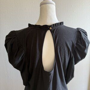 Nation LTD Puff Sleeve Top High Neck Size Large Keyhole Back Ruffle Victorian