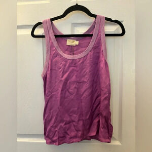 A classic scoop neck tank in luxe sateen. A laid-back fit and Recycled Cotton binding on neck and armholes give a vintage, yet dressed up feeling. Bust 19 Length 22.5