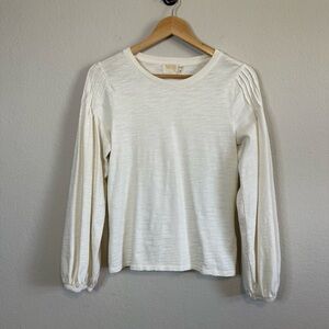 Nation LTD Sabine Cream Puff Sleeve Long Sleeve Tee Crewneck Shirt Size Small