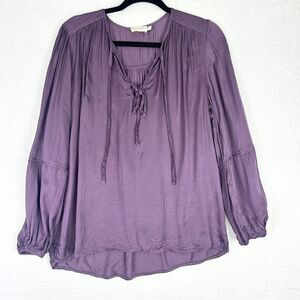 Nation LTD Sandra Seamed Peasant Blouse Purple Rain Size Medium Satin L/S