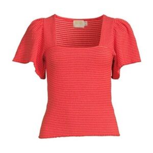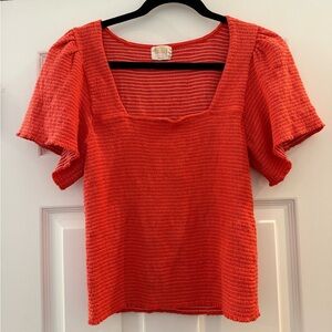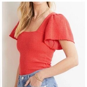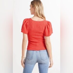 Nation LTD Scarlett Smocked Flutter Sleeve Top Candy Apple Red Orange XL
