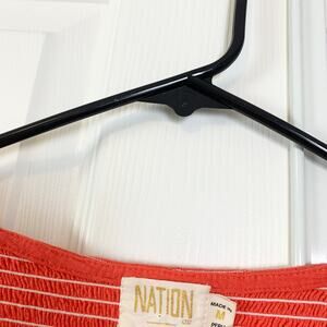 Nation LTD Scarlett Smocked Shirred Short Sleeve Flutter Top Shirt Blouse in Candy Apple Red. A flirty smocked body top in sexy candy apple red. Featuring a square neckline and flutter sleeves. Slim fit. 100% pima cotton. Great used condition.