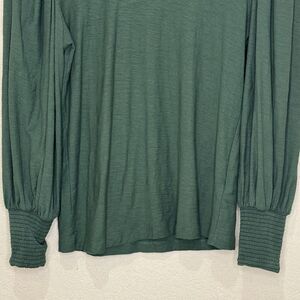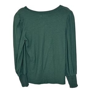 Nation LTD Shirt Womens Small Green Pima Cotton Long Sleeve Puff Sleeve Crewneck