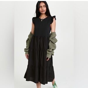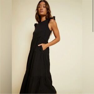 Nation LTD | Sissy Ruffled Midi Tiered Sleeveless Sun Dress in Black Medium