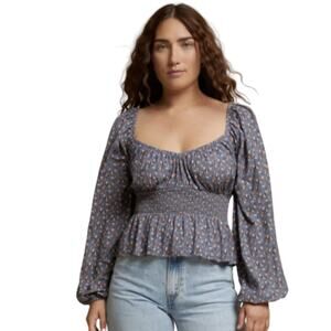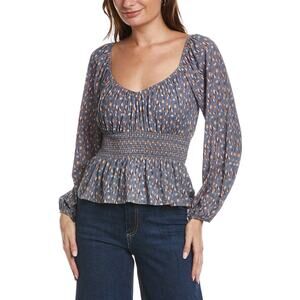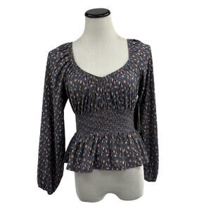 The sweetheart elasticated neckline and smocked high waist of this peplum party tee make for a flattering shape that is oh so easy to wear (and with that high waisted peplum detail, you won't even have to worry about tucking it in). Long sleeves. V neck. Slightly cropped. Pulls on. Pima cotton. Machine wash. New with tags.
