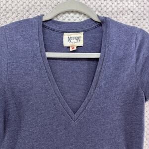 Nation LTD Top Womens XS Blue Tee Shirt V-Neck Short Sleeve Basic Casual