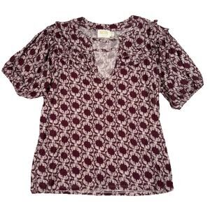 Nation LTD Women's Top Judith Yoked Tee Ikat V-neck Short Sleeve Size Small