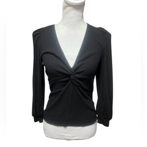 Meet your new favorite going out top. Comfortable, chic and flattering, with a V-neckline, subtle puff sleeves and a sexy front twist.