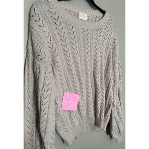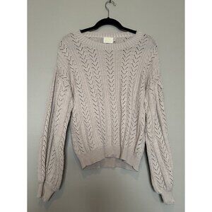 Nation Los Angeles Alpaca Women's Beige Blush Open Knit Pullover Sweater M