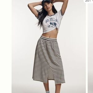 Nation Los Angeles Vida Midi Skirt in Cream and Black Stripe Small