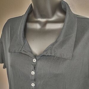 Nation Ltd By Jen Menchaca Women's Medium Dress Shirt Black Modal/Polyester Blend Silky Feel Made In USA Short Sleeve. No Pet/Smoke Odors Slightly Wrinkled. 20.5" Pit To Pit 36" Long. Condition Is "Pre-owned"