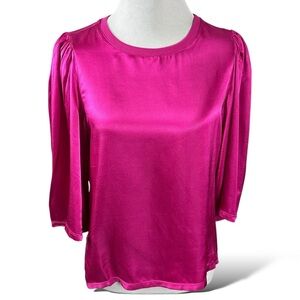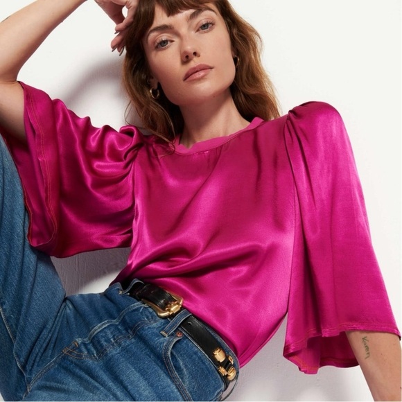 Nation Ltd Donna Bell Sleeve Top in Miss Magenta Size XS Satin Shiny Valentines