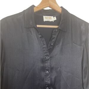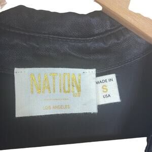 Nation Ltd. Ezra Satin Romper Size S. Long sleeves( roll-up)black Hammered Satin button down romper, front pockets, relaxed fit.100% Rayon, midweight, stonewashed for a softer feel that mimics silk. Pre-owned great condition. Measurements: pit to pit 17.5" , length 33"