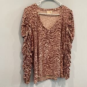 Nation Ltd Renee Shirred Sleeve V-Neck Size XL Pima Cotton Red Preppy Classic