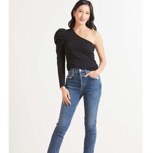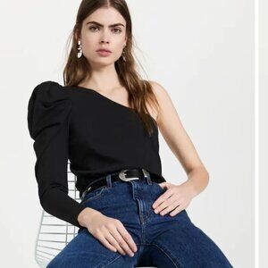 Turn heads in this party-ready stunner by Nation Ltd. Featuring a dramatic one sleeve silhouette with a bold puff shoulder, this striking top looks equally chic paired with a leather pant or your favorite jeans.