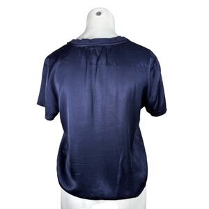 Nation Marie Satin Boxy Crop Top Women's Small in Midnight Blue Short Sleeve