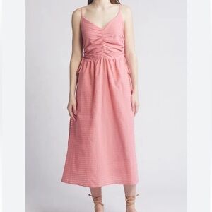 Nation Peppa Ruched Linen-Blend Sundress in Pink Size Small