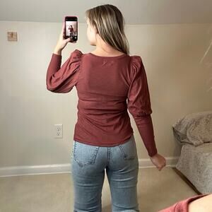 Nation: Rust Red Long Sleeve V Neck Tee Padded Shoulders