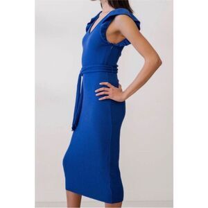 Nation LTD Oriana Ruffled Sash Dress Ribbed Midi Dress Royal Blue Suede NWT