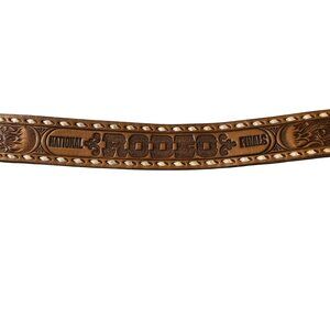 National Finals Rodeo Belt Brown Leather Justin Brand Size 32 NFR Vintage Wester