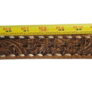 National Finals Rodeo Belt Brown Leather Justin Brand Size 32 NFR Vintage Western Wear