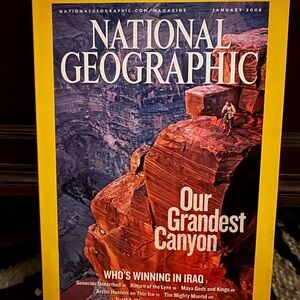Collection of National Geographic magazines with vibrant covers. Features various themes and stunning photography.