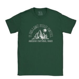 National Parks Five Billion Star Hotel T-Shirt Forest Green Small EUC