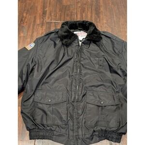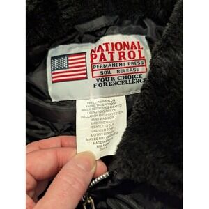 National Patrol Jacket Mens Large Black Bomber Fur Collar Quilted Flag Patch