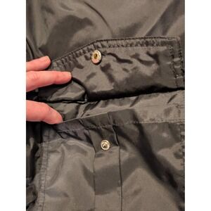 Details: Full zip front with snap storm flap, quilted lining, elastic hem, inner cuffs, two front flap pockets, chest strap/tab, and sleeve utility zip pocket.
