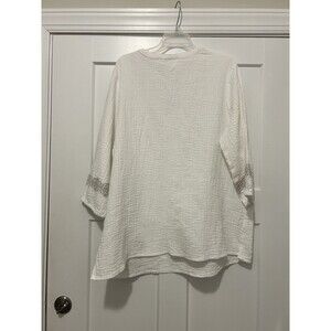 National White Embroidered Cotton Tunic Plus Size 3X Modest Summer 3/4 Sleeve