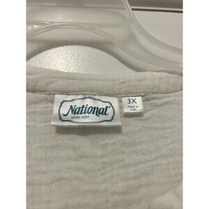 This National tunic blouse is a perfect addition to your summer wardrobe. The white color is stylish and versatile, while the embroidered accents add a touch of elegance. The 3/4 sleeves and notch neck/V-neckline are comfortable and flattering, and the blouse is made from lightweight and easy-care materials.