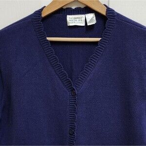 National Wildlife Federation Cardigan Sweater Womens L Navy Sunflowers Vintage