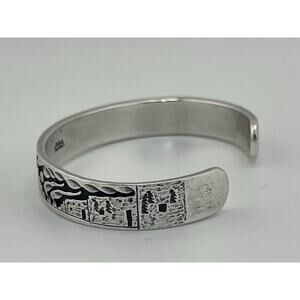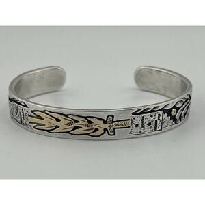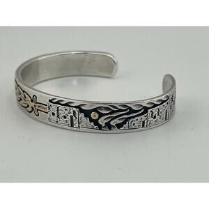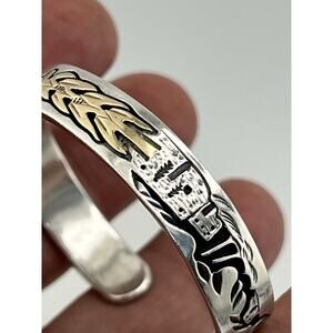 Native American 14k Yellow Gold End 925 Sterling Silver Cuff Bracelet Signed