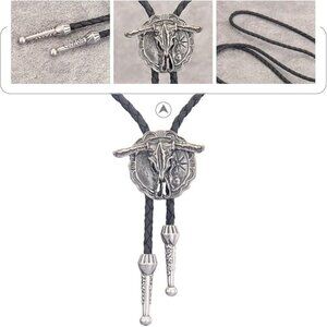 WESTERN cowboy tie bolo leather rope length is 42.5 inches with adjustable Initial Cow Pendant and leather cord connected, you can wear it as a traditional Native American western tie firm to your neck for wedding or business event, and also can be your fashion women's bolo tie with your casual clothes.