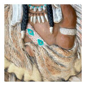 This stunning Vintage Native American 3D Ceramic Wall Hanging is a signed original by Karen Brooks. Hand painted in vibrant multicolors, it brilliantly encapsulates native American style and culture.
