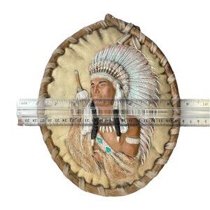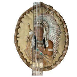 Native American Chief Warrior Wall Decor With Feather Headdress & Beaded Details