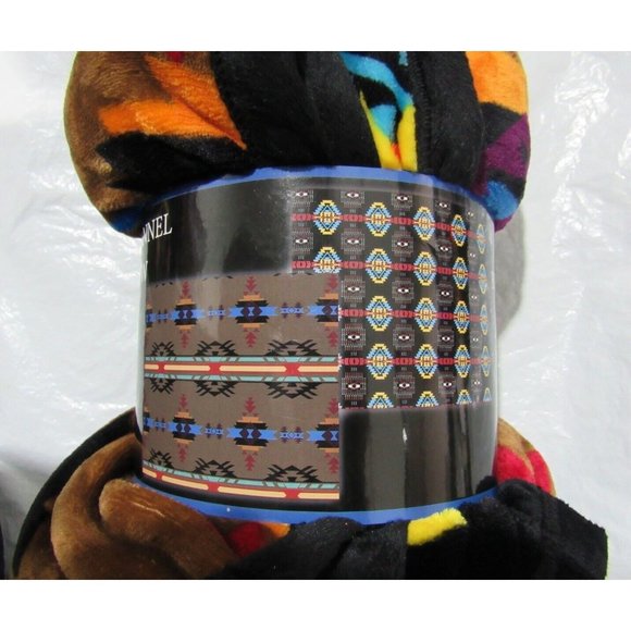 Native American Design Southwest Flannel Fleece Throw Blanket 2 Sided 60" x 50". Double sided Native American Design on brown background on 1 side and black background on the other. 100% polyester. Licensed and Manufactured by Ramatex International. Luxury Plush blanket measures 50" by 60".