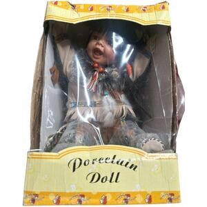 Native American Hand Painted Collectable Porcelain Doll 10"