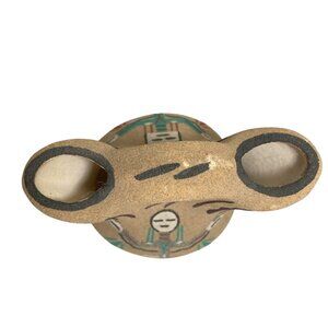 This Native American hand-painted sand art wedding vase is a beautifully crafted piece originating from the Americas, specifically the Navajo tribe in the United States. Handmade with intricate designs, this 5.5" vase showcases traditional Native American culture and artistry. The untouched authenticity of this piece makes it a unique and collectible item for those interested in Native American heritage and craftsmanship.