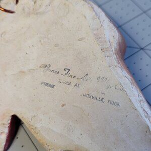 Good condition with a few flaws. There is some mild discoloration on the face and a few small chips to the paint where the white chalk shows through (see the photos). There is a wire on the back to hang it and a stamp that reads Jones Fine Art Mfg Knoxville Tenn. The address is unreadable. Probably from the 1950's.