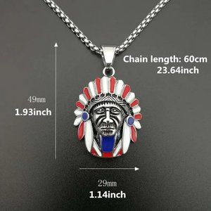 Hip Hop Jewelry Painted Indian Pendant Necklace Silver finished.