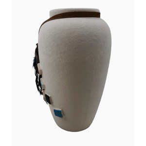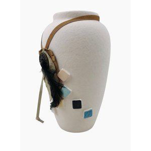 Native American Indian Style Vase Feather Vase White Home Decor Pottery 8 in