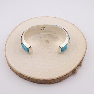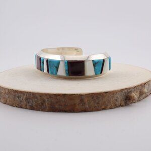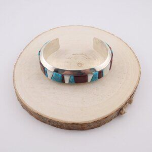 Native American Multi Stones Cuff Bracelet Sterling Silver Signed Sz 6.5 in. **