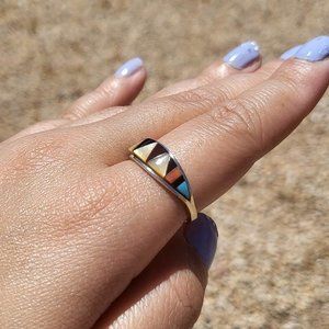 Native American Multi Stones Inlay Sterling Silver Ring Handmade Jewelry