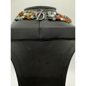 Natural cube shaped gemstones, 3 strand choker, Native Southwest handmade. This choker is 17 inches with a stainless toggle.