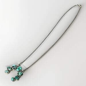 • Design Details: Crescent-shaped Naja pendant featuring six bezel-set turquoise cabochons in varying teardrop and oval shapes, accented with silver beads.