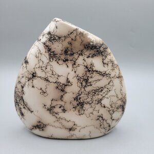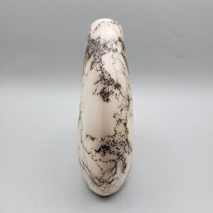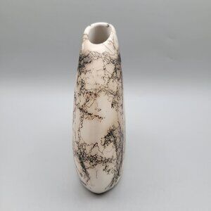 To make the pottery, they pour a ceramic white slip substance into a mold. Next, they pour out the excess slip and let it sit to dry. The ceramicware is cleaned and polished. The ceramic pot is heated in a kiln. Mane hair or tail hair is then thrown randomly on the heated pot. The resulting carbon being drawn into the surface of the pot creates the wonderful designs and patterns. Finally, they clean the finished pottery with a dry material and the finished product is a unique marbleized flare styled pot. This process of art is very time consuming.