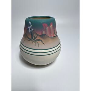 Native American New West Hand Painted Pink and Blue Pottery Vase. Adorable little piece of Native American artwork.