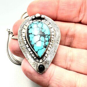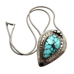 Elevate your style with this stunning Native American pendant necklace featuring an exquisite turquoise stone set in sterling silver. Perfect for any occasion, this necklace adds a touch of elegance and cultural heritage to your look.