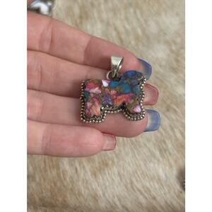 Native American SW Sterling Silver Pink Dahlia Turquoise Cow Bull Steer Pendant